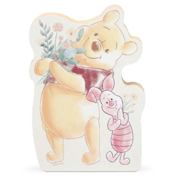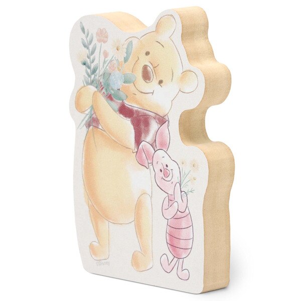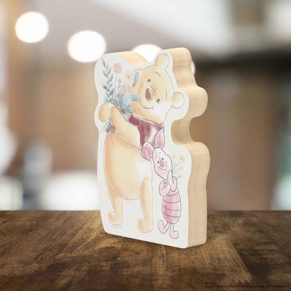 Disney Winnie the Pooh & Piglet with Flower Bouquet Chunky Wood Decor