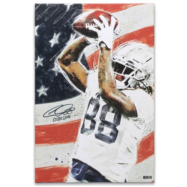NFL Player's Association Dallas Cowboys Ceedee Lamb Painterly American Flag Canvas Wall Decor